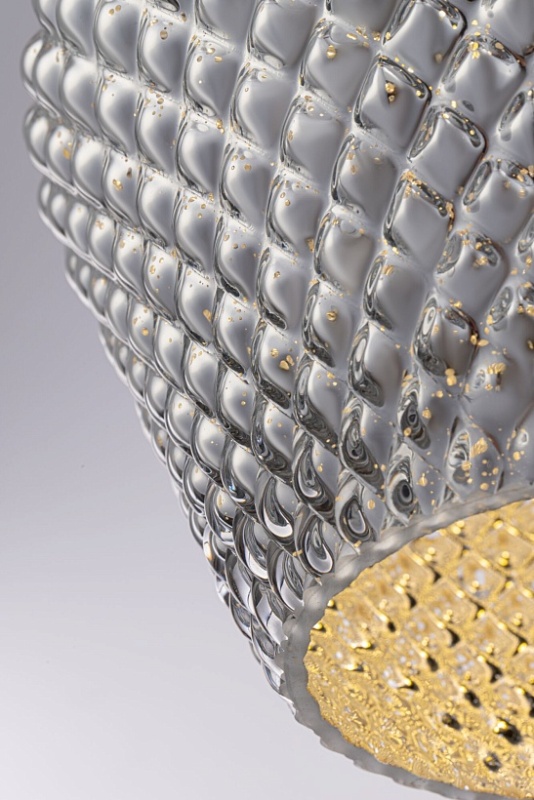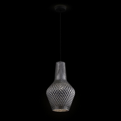 Арматура из металла в черном цвете. Фактурный плафон с рельефным рисунком, материал – выдувное стекло. Высота светильников ре