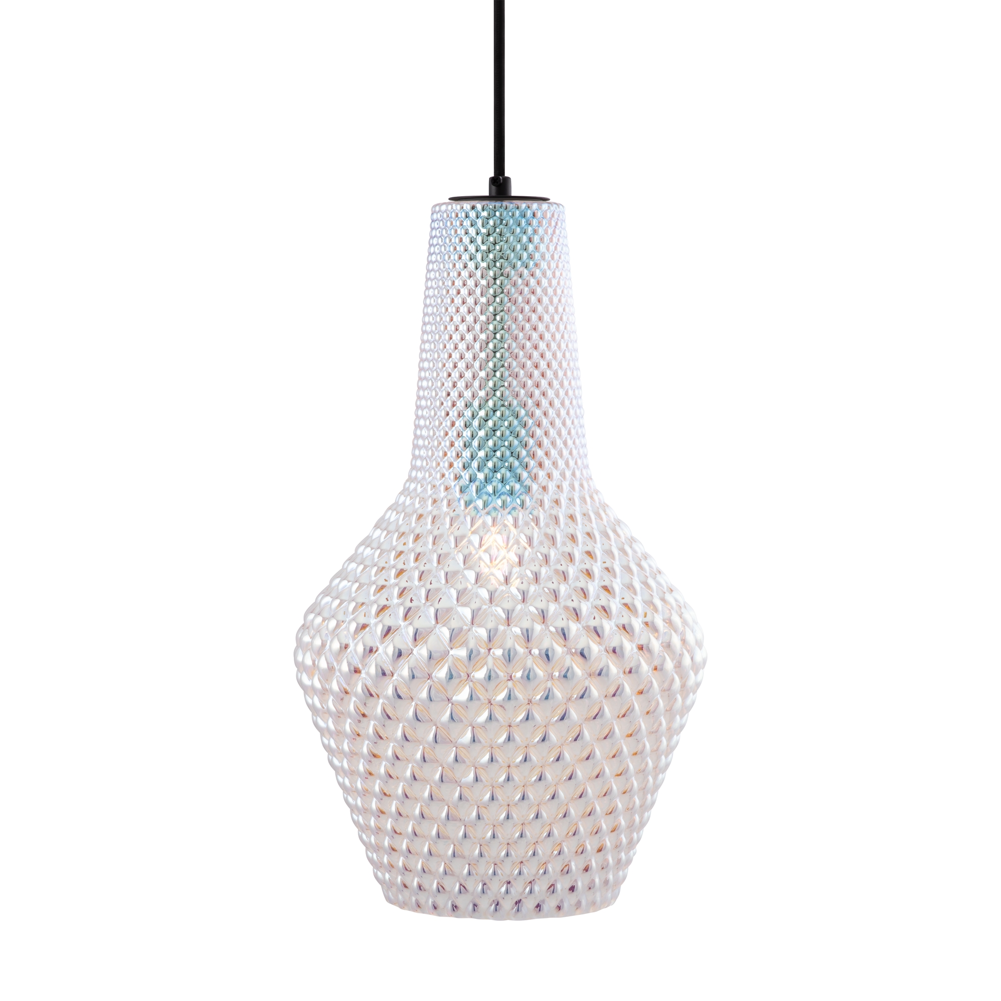 Арматура из металла в черном цвете. Фактурный плафон с рельефным рисунком, материал – выдувное стекло. Высота светильников ре