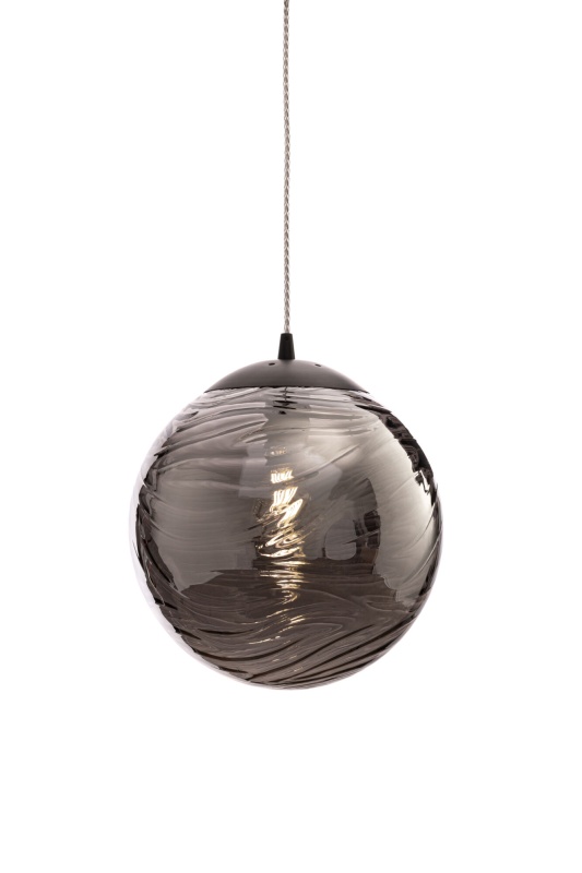 Волнистые мягкие линии на поверхности стеклянных плафонов напоминают песочные барханы, перетекающие один в другой по бескрайним просторам пустыни. Благодаря такой фактуре образ заключенной внутри лампы размывается, а свет становится рассеянным и буквально обволакивает освещаемое пространство. Плафоны представлены в дымчатом, прозрачном и янтарном цвете. Высоту светильников можно отрегулировать, изменяя длину шнура.