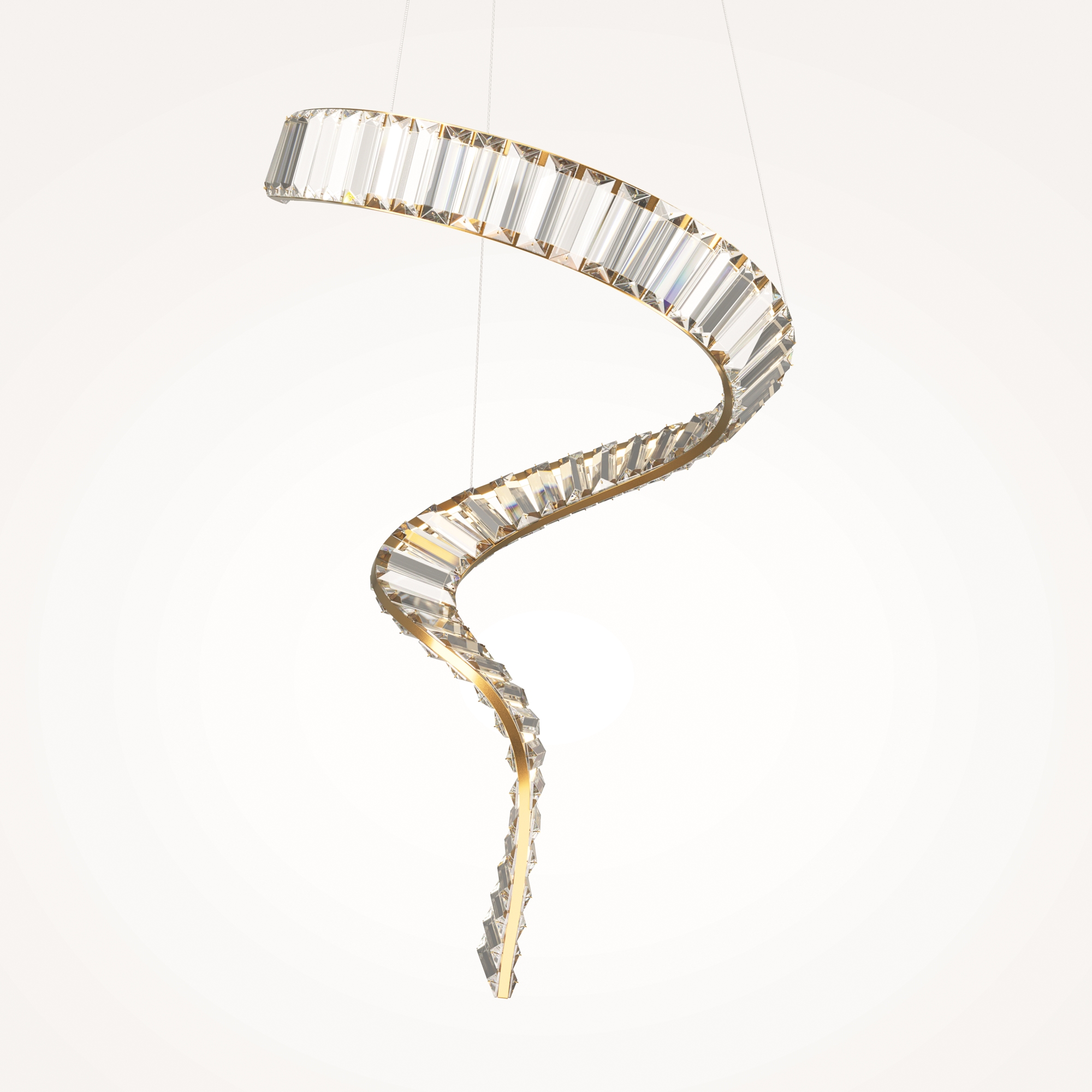 Металлическая арматура, цвет - латунь. Асимметричный хрустальный декор. LED-источник света. Цветовая температура - 3000К. Высокий индекс цветопередачи 90Ra