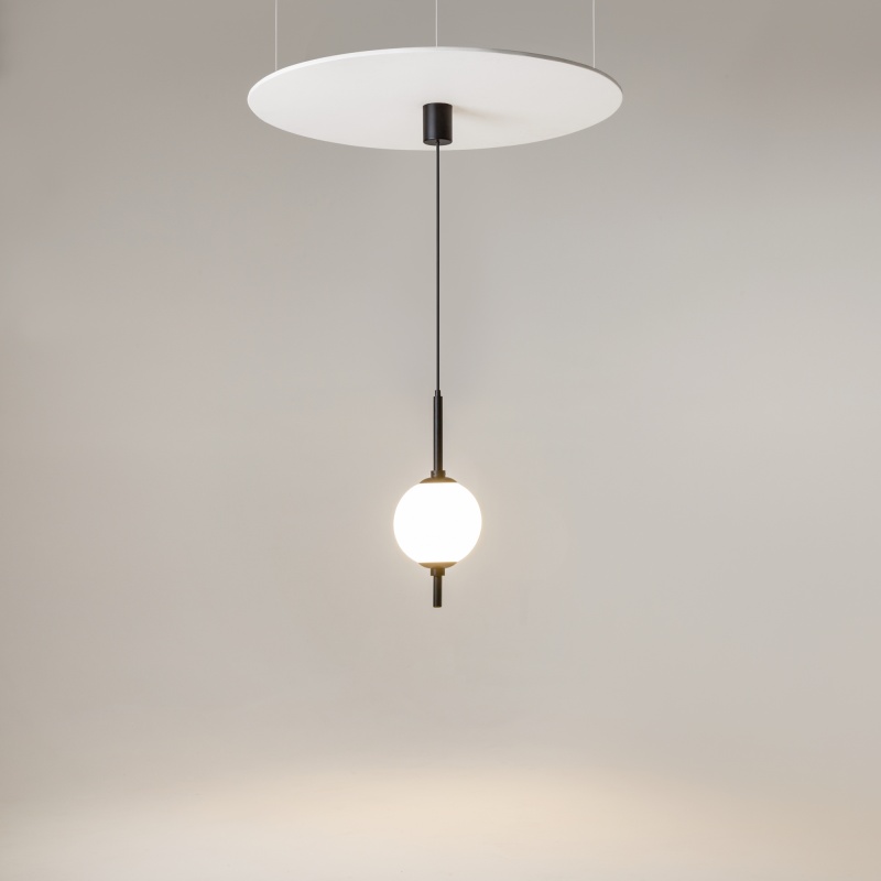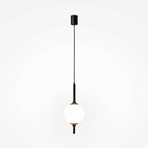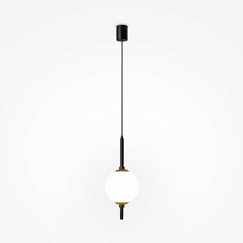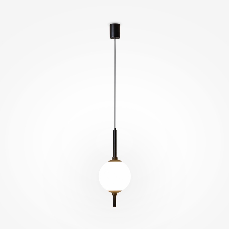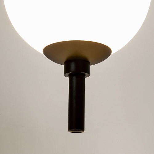Металлическая арматура в черном цвете. Плафоны-сферы из белого стекла. LED-источник света с цветовой температурой 3000К. Удобные выключатели вверхней части арматуры. Функция раздельного включения световых элементов