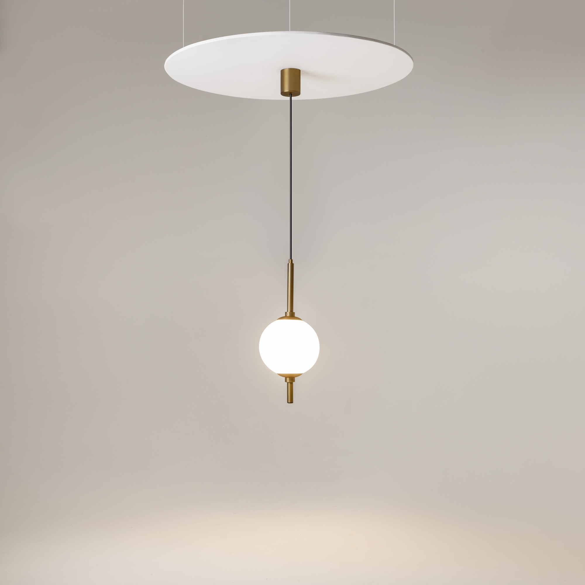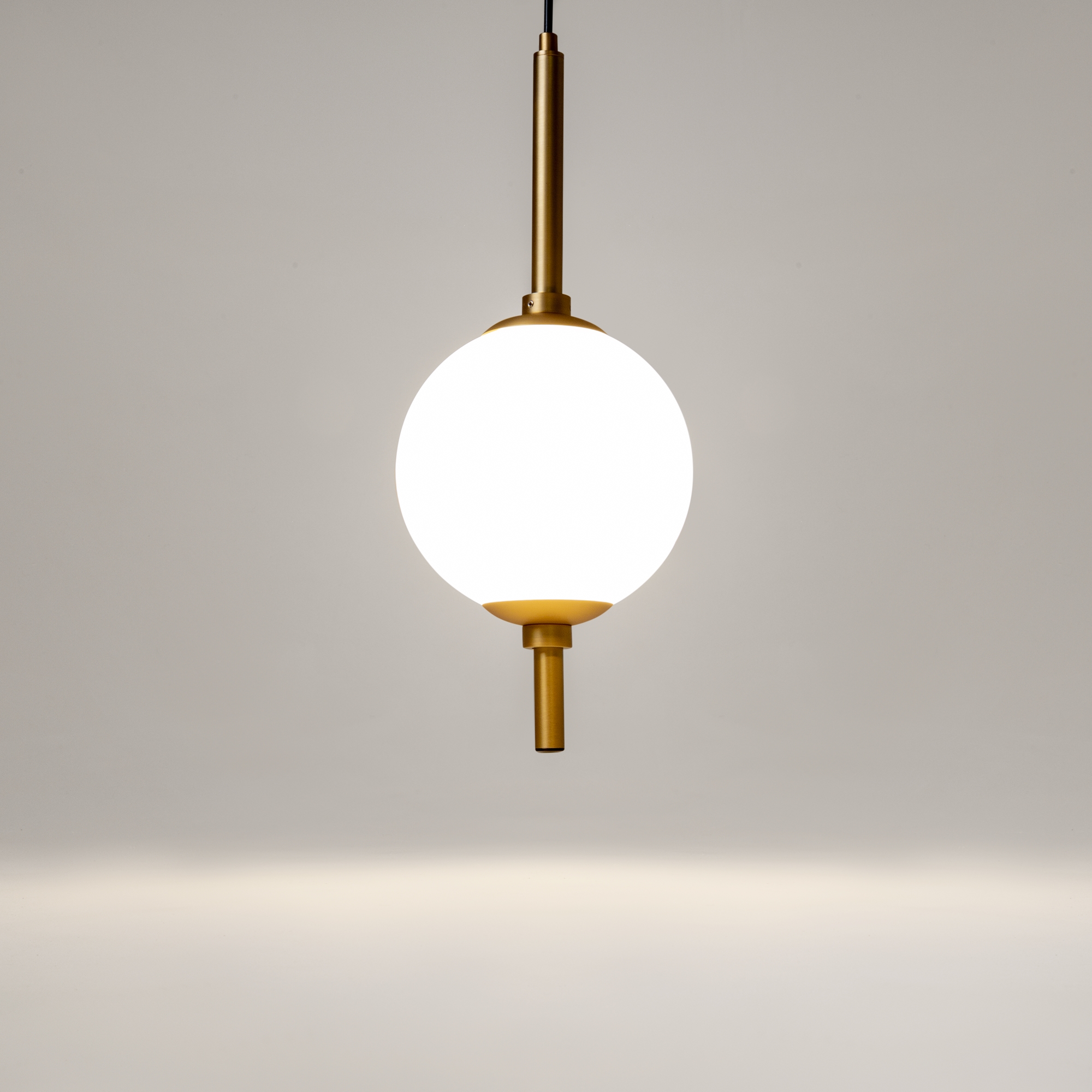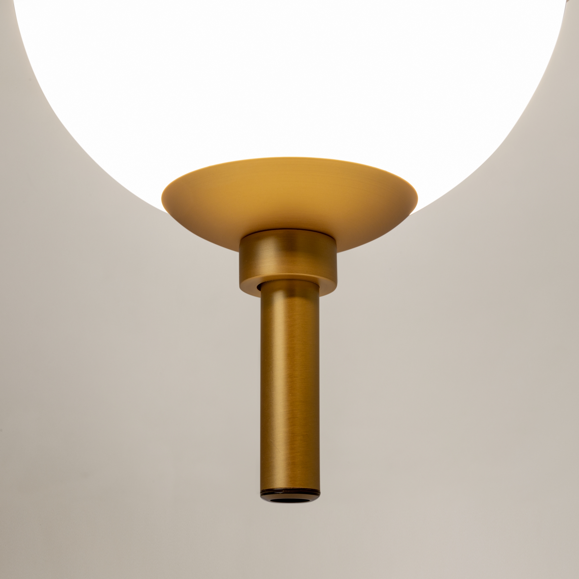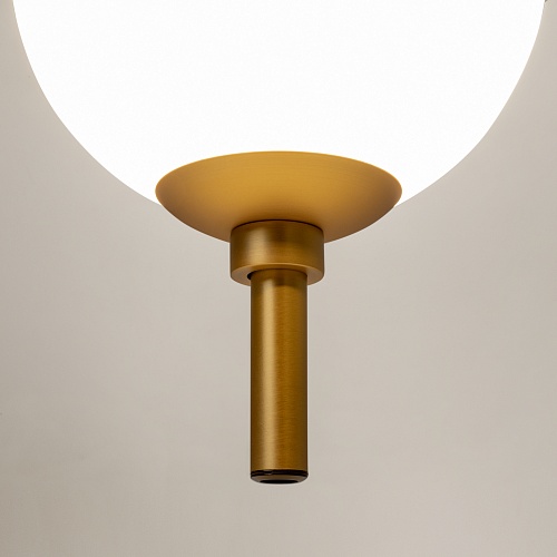 Металлическая арматура в черном цвете. Плафоны-сферы из белого стекла. LED-источник света с цветовой температурой 3000К. Удобные выключатели вверхней части арматуры. Функция раздельного включения световых элементов