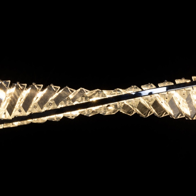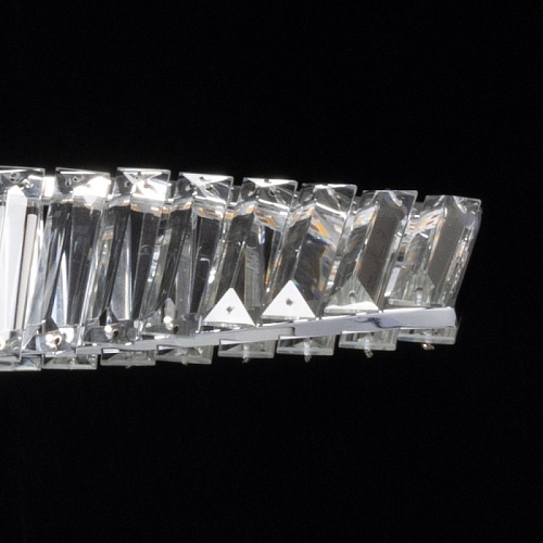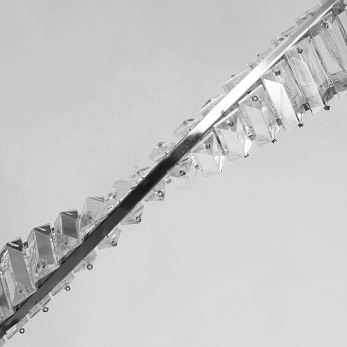 Металлическое основание подвесной люстры гальванизировано в цвет хрома. Люстра декорирована прозрачным хрусталем.