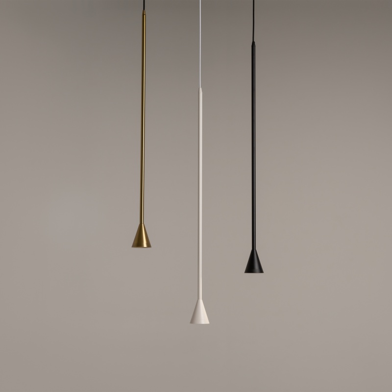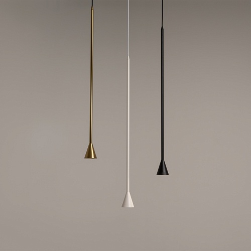 Подвесные светильники с оригинальным корпусом черного, белого и золотого цветов. Выполненные в минималистичном стиле, светильники с легкостью впишутся в любое пространство и дополнят его своей нетривиальностью. Тонкий акцентный провод добавляет конструкции легкости и регулируется по длине, позволяя расположить светильник на нужной высоте.