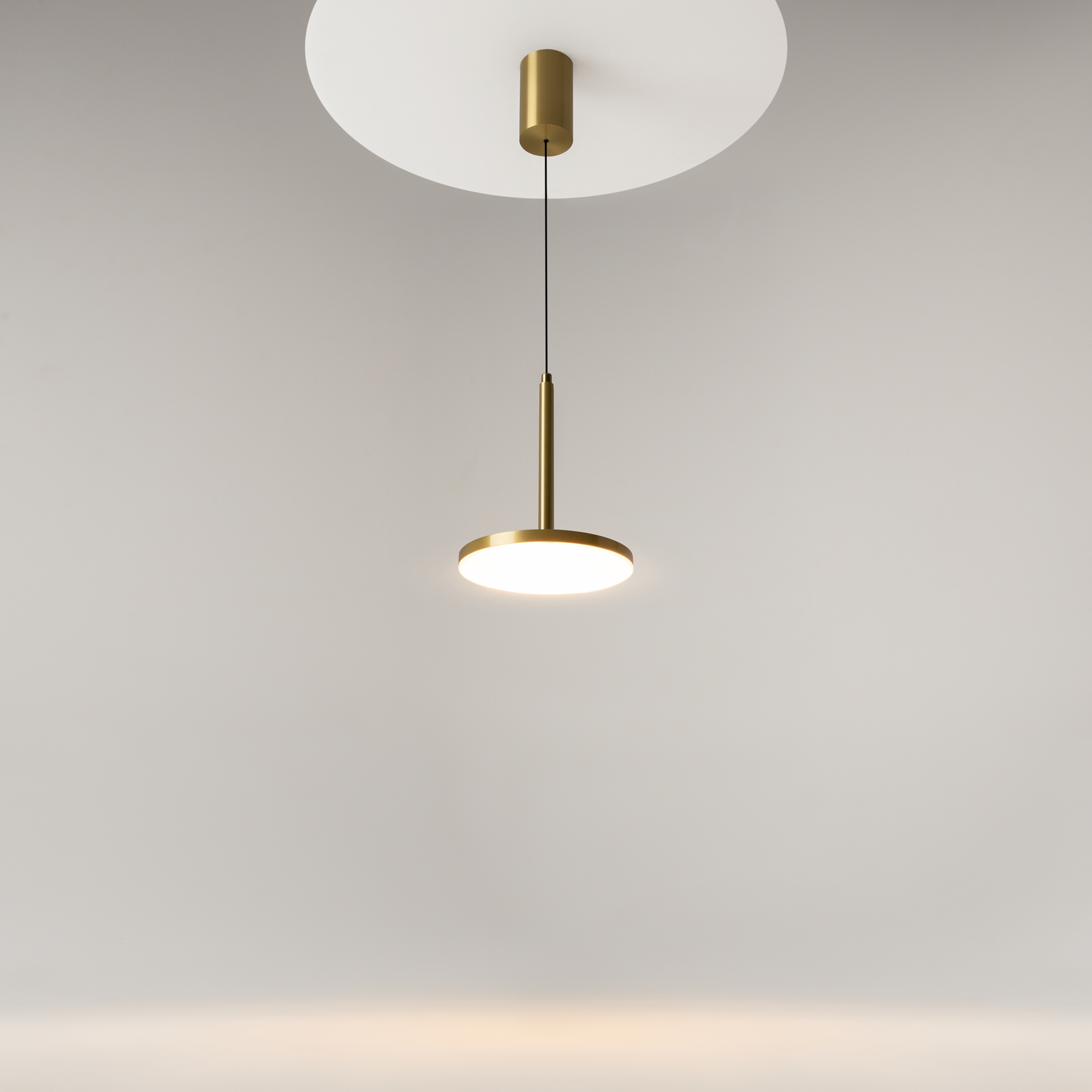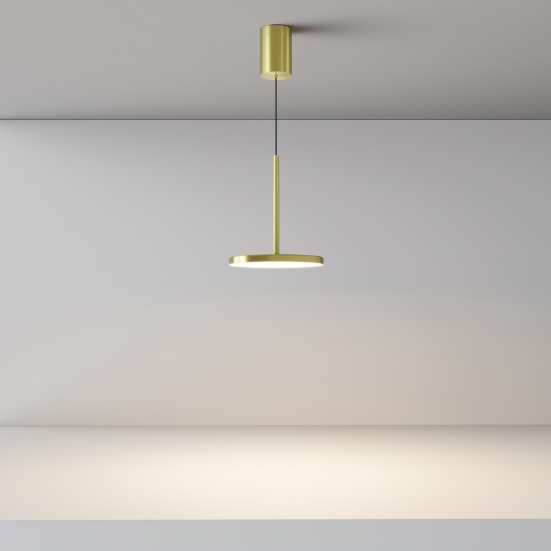 Материал корпуса – металл; цвета - черный, латунь и белый. Механизм регулировки по высоте. Матовый рассеиватель. Широкий угол рассеивания. LED-источник света. Цветовая температура - 3000К или 4000К. Высокий коэффициент цветопередачи >90. Совместимость с драйверами DALI и Triac для изменения цветовой температуры и диммирования.