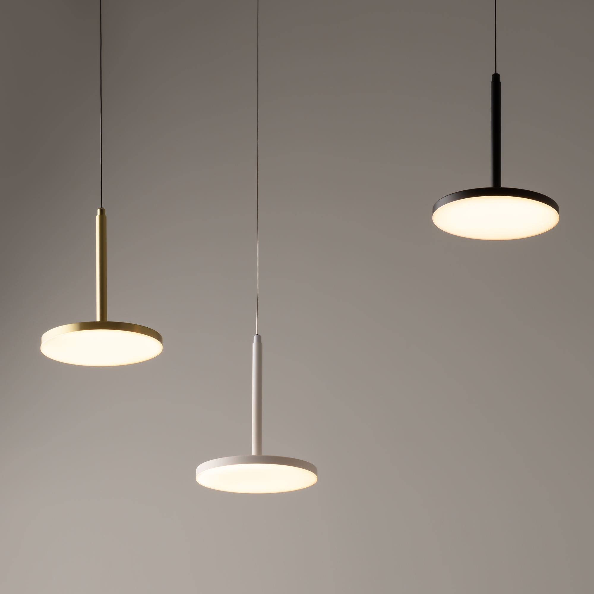 Материал корпуса – металл; цвета - черный, латунь и белый. Механизм регулировки по высоте. Матовый рассеиватель. Широкий угол рассеивания. LED-источник света. Цветовая температура - 3000К или 4000К. Высокий коэффициент цветопередачи >90. Совместимость с драйверами DALI и Triac для изменения цветовой температуры и диммирования.