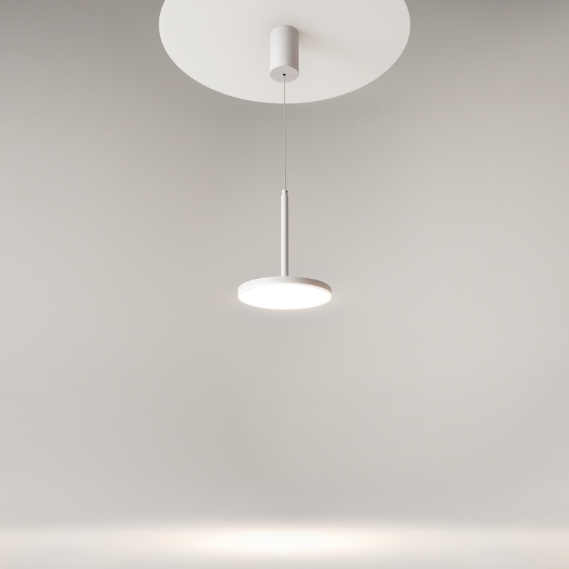 Материал корпуса – металл; цвета - черный, латунь и белый. Механизм регулировки по высоте. Матовый рассеиватель. Широкий угол рассеивания. LED-источник света. Цветовая температура - 3000К или 4000К. Высокий коэффициент цветопередачи >90. Совместимость с драйверами DALI и Triac для изменения цветовой температуры и диммирования.