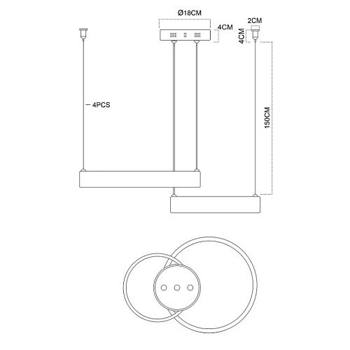 Универсальное крепление в цвете хром для создания композиции из двух кольцевых люстр, в комплекте металлическая чашка крепления, коннекторы, аксессуар