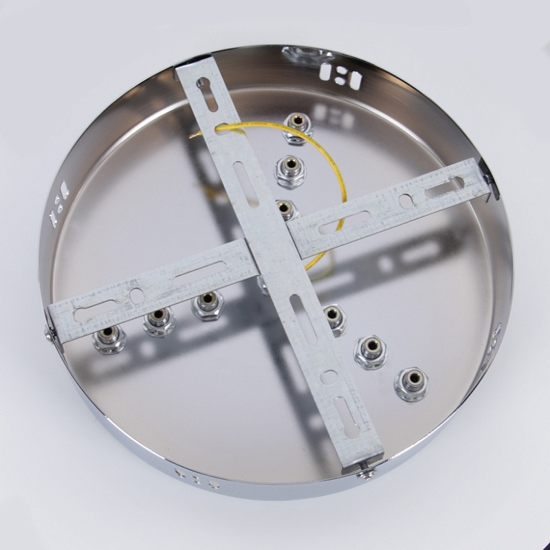 Универсальное крепление в цвете хром для создания трехъярусной люстры, в комплекте металлическая чашка крепления, коннекторы, аксессуары и инструменты