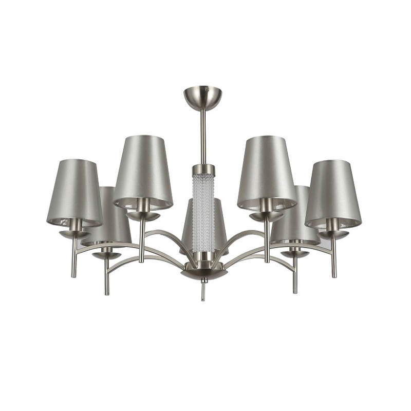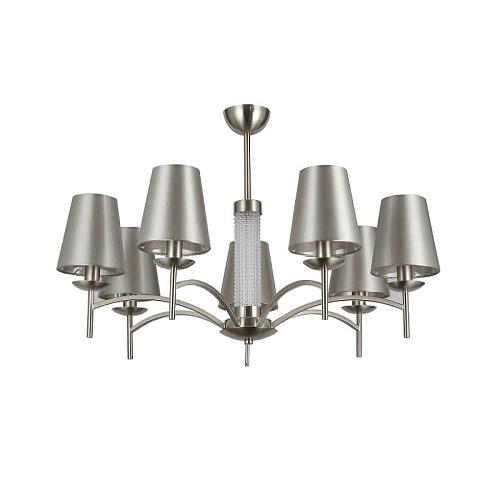 каркас цвета никеля, плафоны из серой атласной ткани, декоративный стеклянный элемент