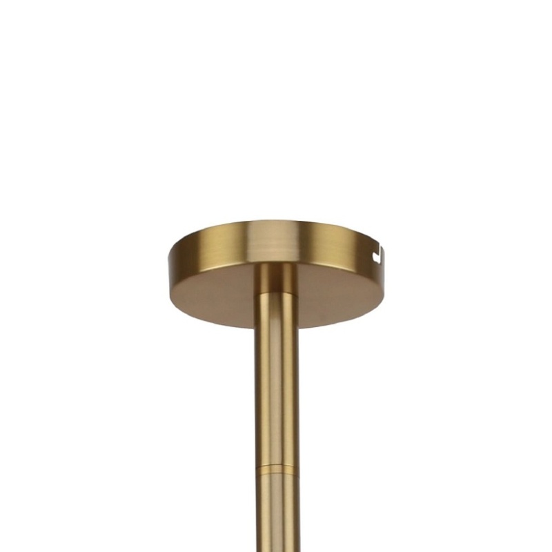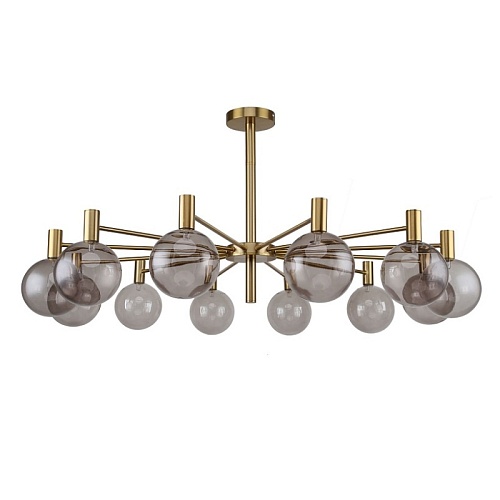 Металлический каркас цвета латунь, круглые плафоны из стекла коньячного оттенка.