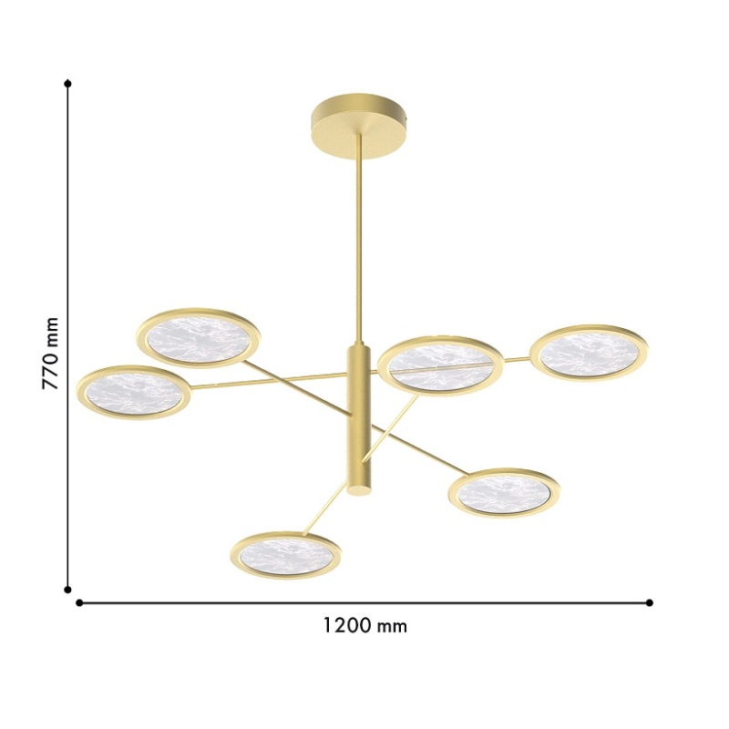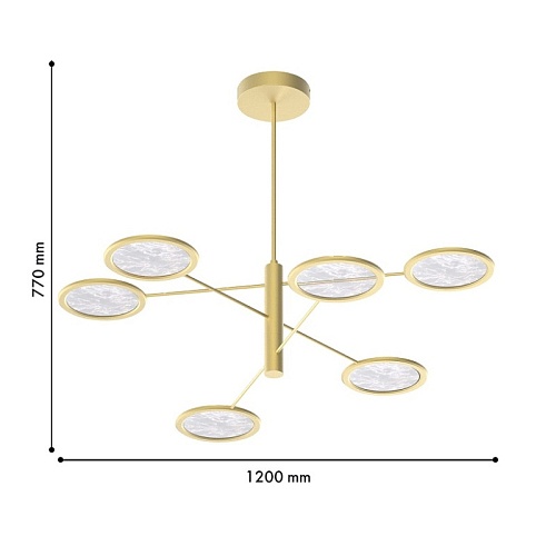 Металлический каркас в цвете матовое золото, плафоны из акрила с эффектом дыма, лента LED расположена по внутреннему периметру плафона.
