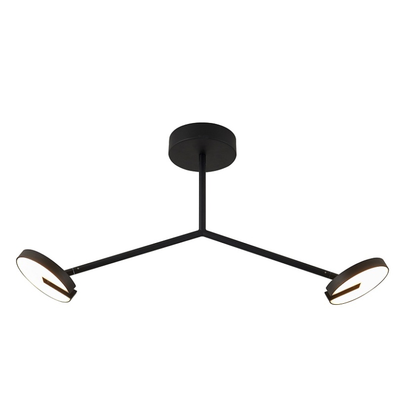 Металлический каркас черного матового цвета, плафоны из белого акрила с металлической окантовкой, специальная декоративная щель в плафонах и встроенный поворотный механизм позволяют поворачивать их под углом 90°.