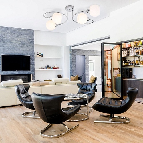 • Важный фактор для потолочных ламп и люстр – направление рассеивания света. Есть различные варианты и направления. В сторону, вверх или вниз, на пол. Если вы выбрали направление «вверх», следует рассмотреть более мощную лампу, так как освещение будет происходить при помощи отраженного от потолка света.