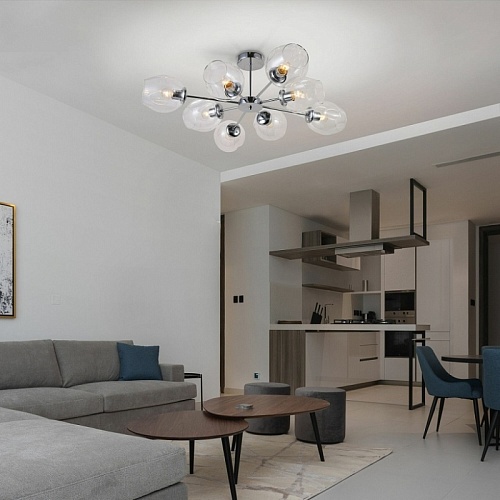 • Важный фактор для потолочных ламп и люстр – направление рассеивания света. Есть различные варианты и направления. В сторону, вверх или вниз, на пол. Если вы выбрали направление «вверх», следует рассмотреть более мощную лампу, так как освещение будет происходить при помощи отраженного от потолка света.