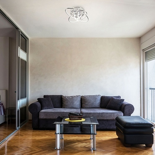 • Важный фактор для потолочных ламп и люстр – направление рассеивания света. Есть различные варианты и направления. В сторону, вверх или вниз, на пол. Если вы выбрали направление «вверх», следует рассмотреть более мощную лампу, так как освещение будет происходить при помощи отраженного от потолка света.