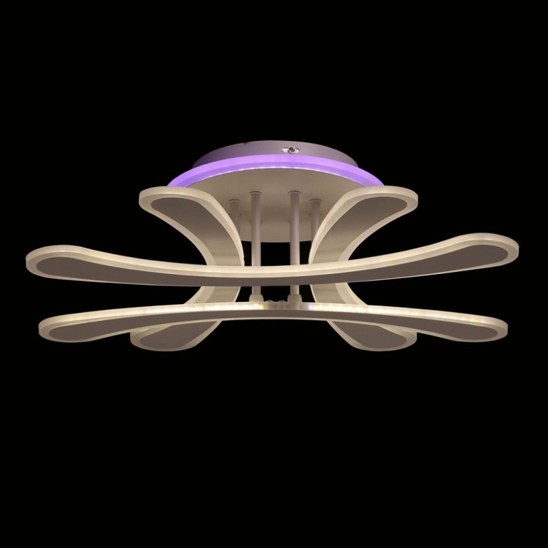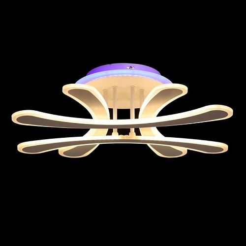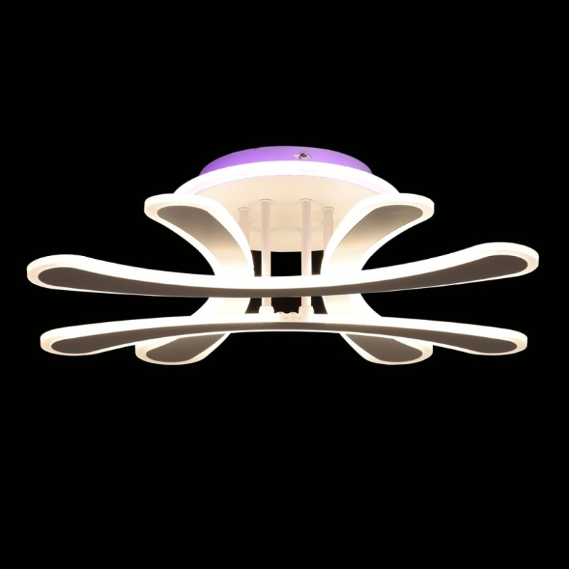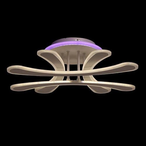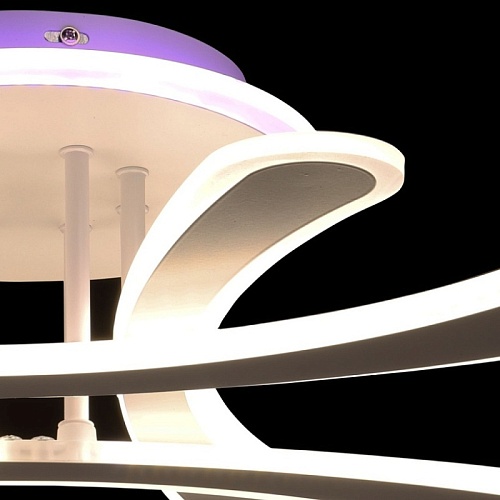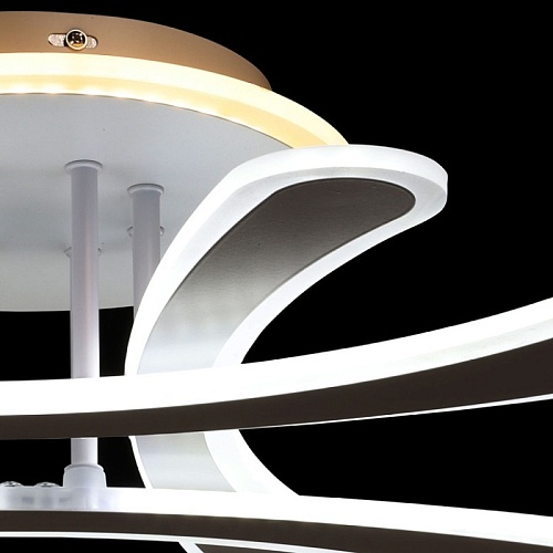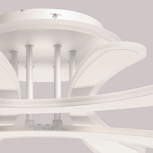 Металлическое основание потолочной люстры окрашено в белый цвет. Корпус плафонов выполнен из сплава алюминия с цинком и окрашен в цвет основания. Светодиодные источники света закрыты матовым акрилом.