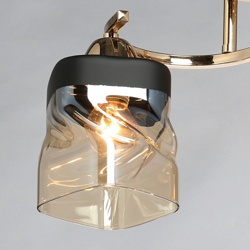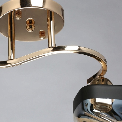 Металлическое основание светильника гальванизировано в цвет золота. Стеклянные плафоны отлиты в сложную перекрученную форму и гальванизированы в коньячный цвет. У основания плафоны окрашены в черный цвет.