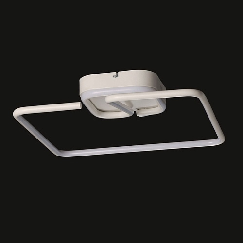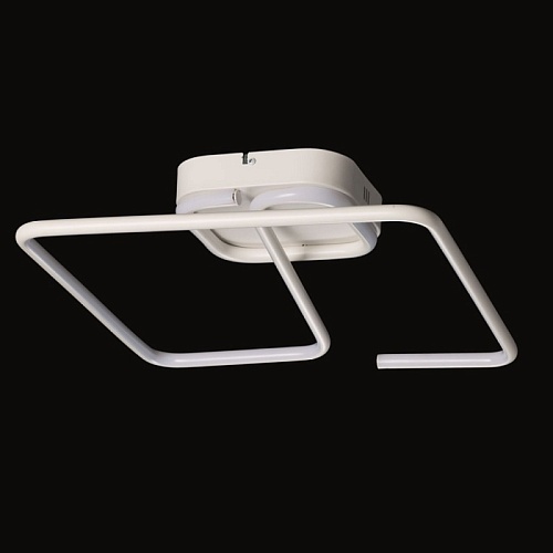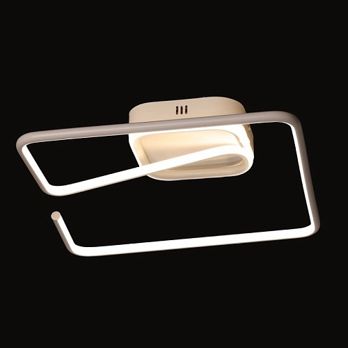 Металлическое основание потолочной люстры окрашено в белый цвет. Светодиодные источники света закрыты белым силиконом.