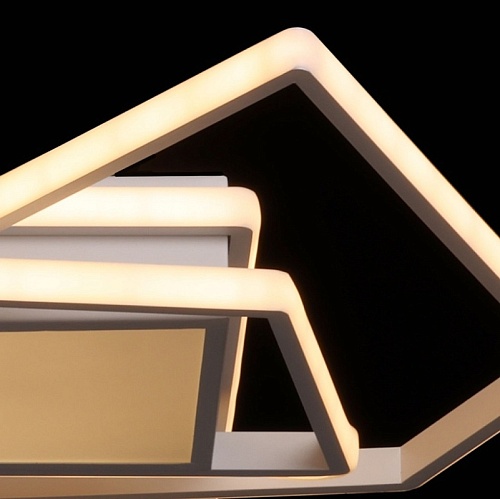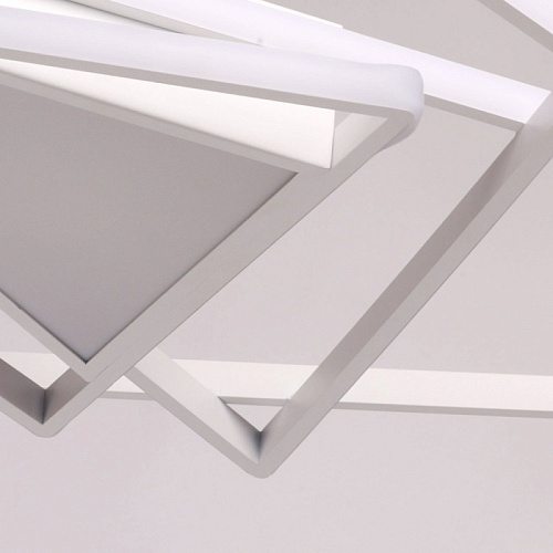 Металлическое основание потолочной люстры окрашено в белый цвет. Корпус плафона выполнен из сплава алюминия и окрашен в цвет основания. Светодиодные источники света закрыты белым силиконом и матовым акрилом.