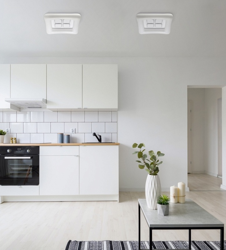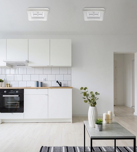 Основание светильника выполнено из металла и окрашено в белый цвет. Светодиодные источники света типа SMD Stripe закрыты белым матовым акрилом.