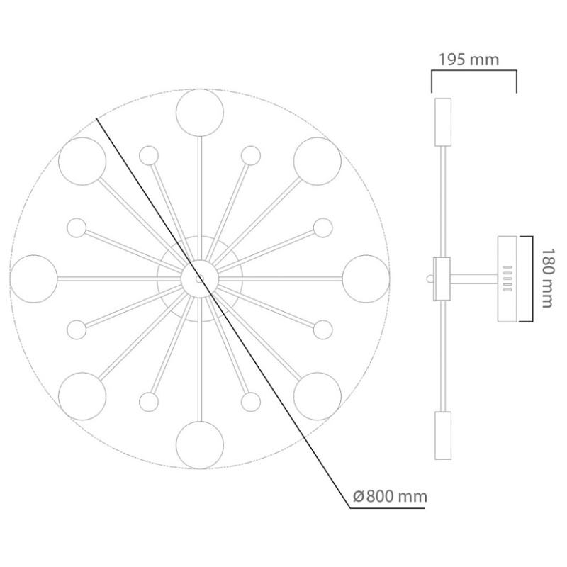 • Диаметр потолочной чаши (мм)