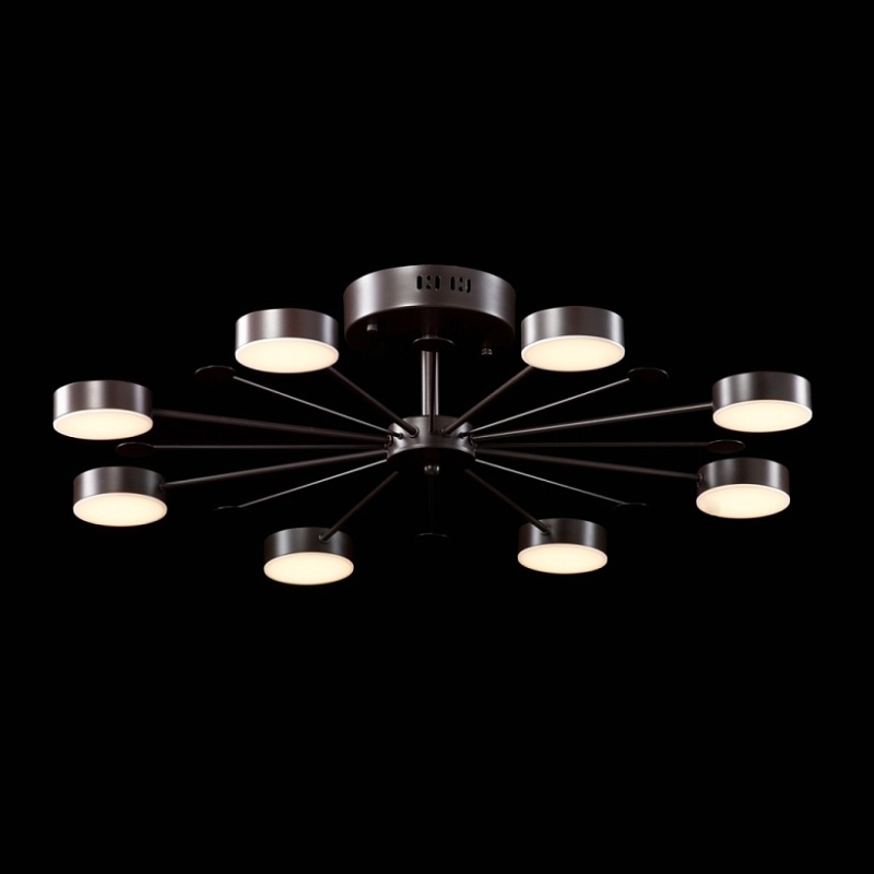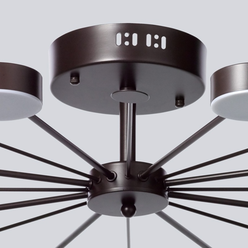 Основание светильника выполнено из металла и окрашено в цвет кофе. Светодиодные источники света тип SMD-Chip закрыты белым матовым акрилом.