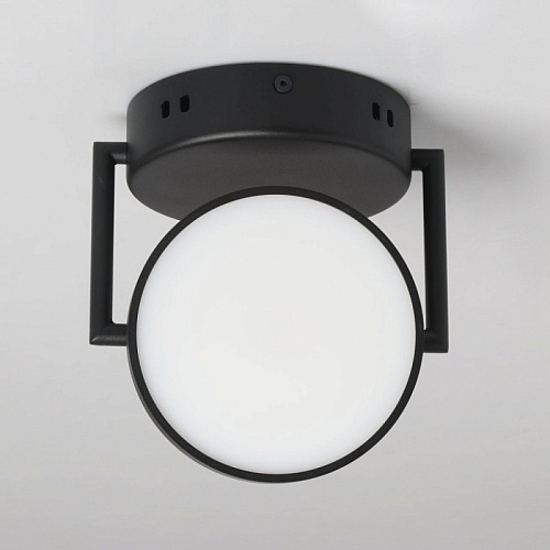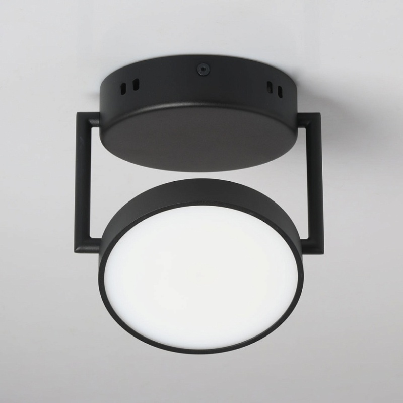 Металлическое основание потолочного светильника обработано по технологии порошкового окрашивания в черный цвет. Светодиодные источники света закрыты белым матовым акрилом.