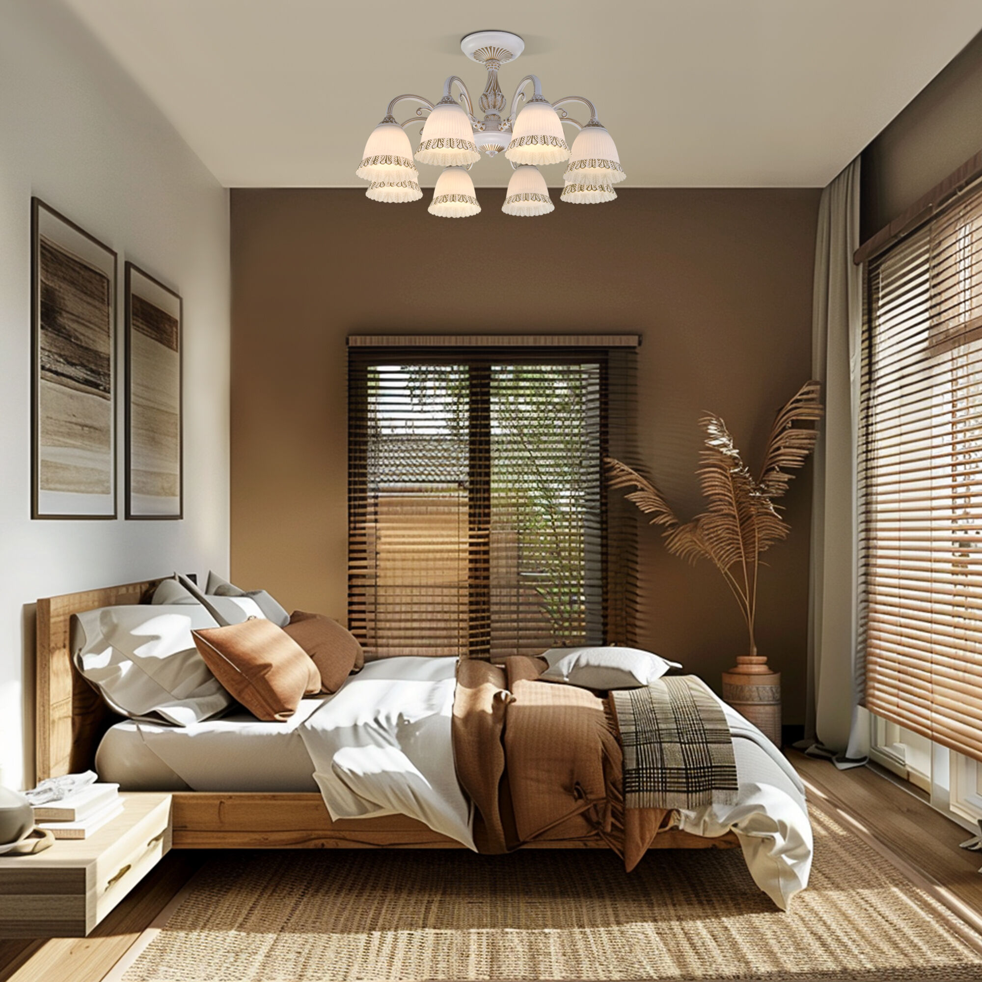 • Важный фактор для потолочных ламп и люстр – направление рассеивания света. Есть различные варианты и направления. В сторону, вверх или вниз, на пол. Если вы выбрали направление «вверх», следует рассмотреть более мощную лампу, так как освещение будет происходить при помощи отраженного от потолка света.