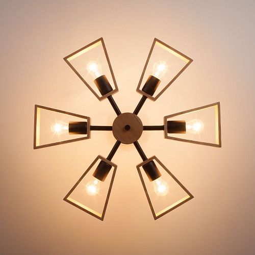 • Важный фактор для потолочных ламп и люстр – направление рассеивания света. Есть различные варианты и направления. В сторону, вверх или вниз, на пол. Если вы выбрали направление «вверх», следует рассмотреть более мощную лампу, так как освещение будет происходить при помощи отраженного от потолка света.
