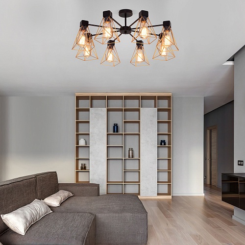 • Важный фактор для потолочных ламп и люстр – направление рассеивания света. Есть различные варианты и направления. В сторону, вверх или вниз, на пол. Если вы выбрали направление «вверх», следует рассмотреть более мощную лампу, так как освещение будет происходить при помощи отраженного от потолка света.