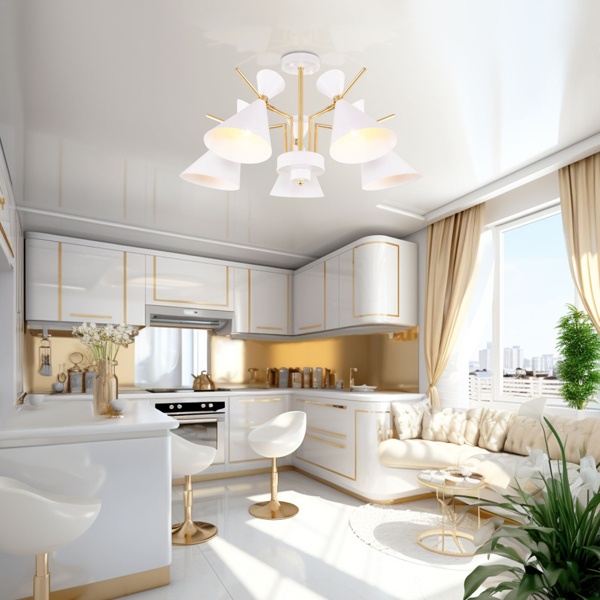 • Важный фактор для потолочных ламп и люстр – направление рассеивания света. Есть различные варианты и направления. В сторону, вверх или вниз, на пол. Если вы выбрали направление «вверх», следует рассмотреть более мощную лампу, так как освещение будет происходить при помощи отраженного от потолка света.