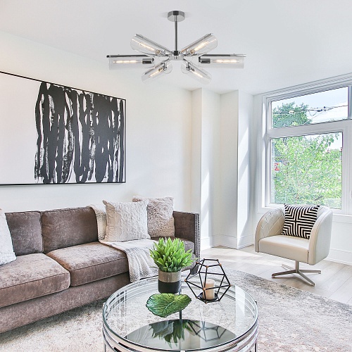 • Важный фактор для потолочных ламп и люстр – направление рассеивания света. Есть различные варианты и направления. В сторону, вверх или вниз, на пол. Если вы выбрали направление «вверх», следует рассмотреть более мощную лампу, так как освещение будет происходить при помощи отраженного от потолка света.