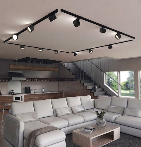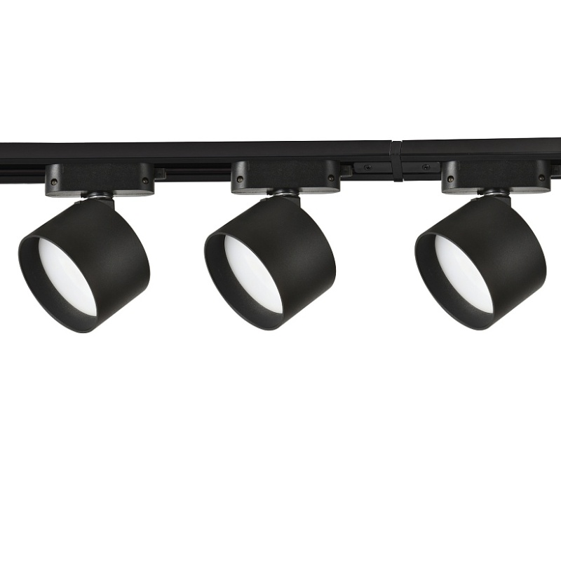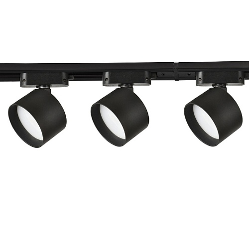 каркас черного цвета, в комплект трековой системы входят: 3 спота, шинопровод (2х1м) и коннектор, угол поворота до 120°
