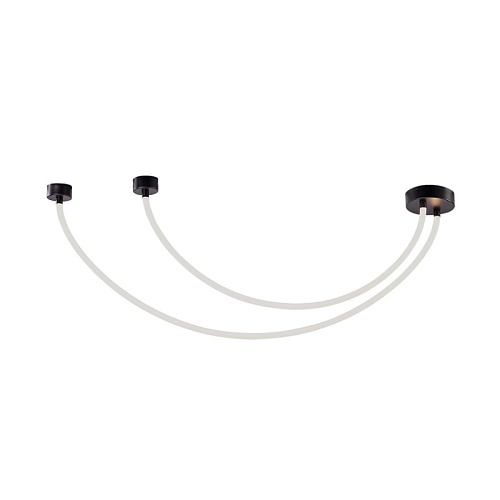 потолочный светильник, потолочное крепление из металла черного цвета, из которого выходят две длинные гибкие силиконовые трубки, выполняющие роль светового элемента, благодаря встроенному в них источнику LED. Меняя точки креплений на концах трубок можно создавать различные вариации светильника.