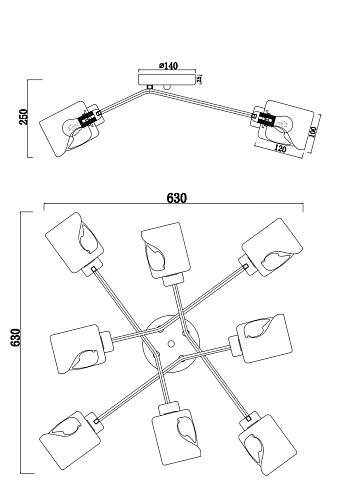 Серия Isabella – прекрасный вариант для современных интерьеров в теплой цветовой гамме. Арматура цвета матового золота выполнена из металла, а плафоны необычной формы – из янтарного стекла. Благодаря небольшой высоте потолочные светильники Isabella можно использовать в помещениях с невысокими потолками. Широкая линейка включает 3 потолочных светильника на 8, 6 и 4 рожка, а также бра.