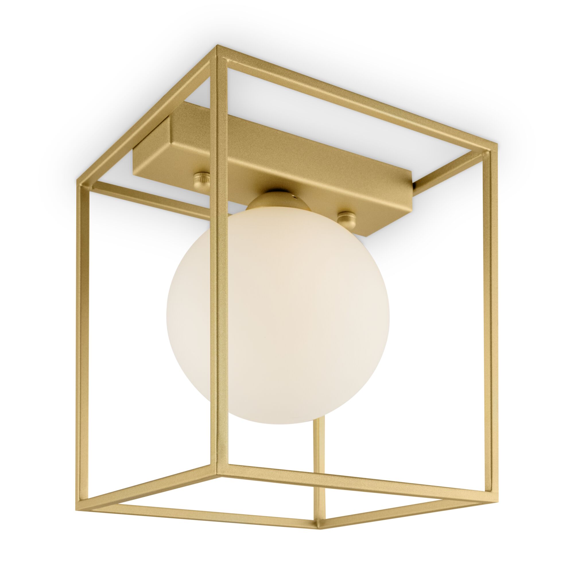 Нетривиальная игра с геометрией – сфера, заключенная в прямоугольное обрамление – яркое и весьма смелое дизайнерское решение. Стеклянные плафоны матово-белого цвета эффектно контрастируют с металлической арматурой роскошного золотого оттенка. Компактные размеры светильника позволяют использовать его даже в небольших комнатах с низкими потолками. В серии представлены люстры различной высоты на 3 и 1 плафон, а также настольная лампа. Светильник-арт-объект станет достойным украшением современных интерьеров, выполненных в различных стилевых решениях.