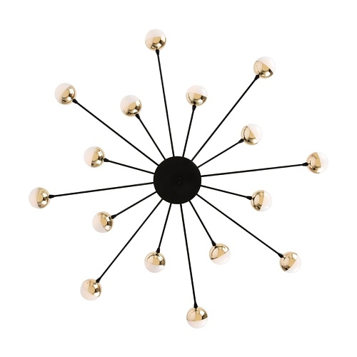 Арматура - металл, цвет - черный, золотой. Плафоны двух видов: из двойного стекла - матового и прозрачного; акриловые с металлическим покрытием половины плафона в цвете латунь. Светильники серии Celebrity отлично подойдут для помещений с не высокими потолками. Источник света - лампа с цоколем G9.