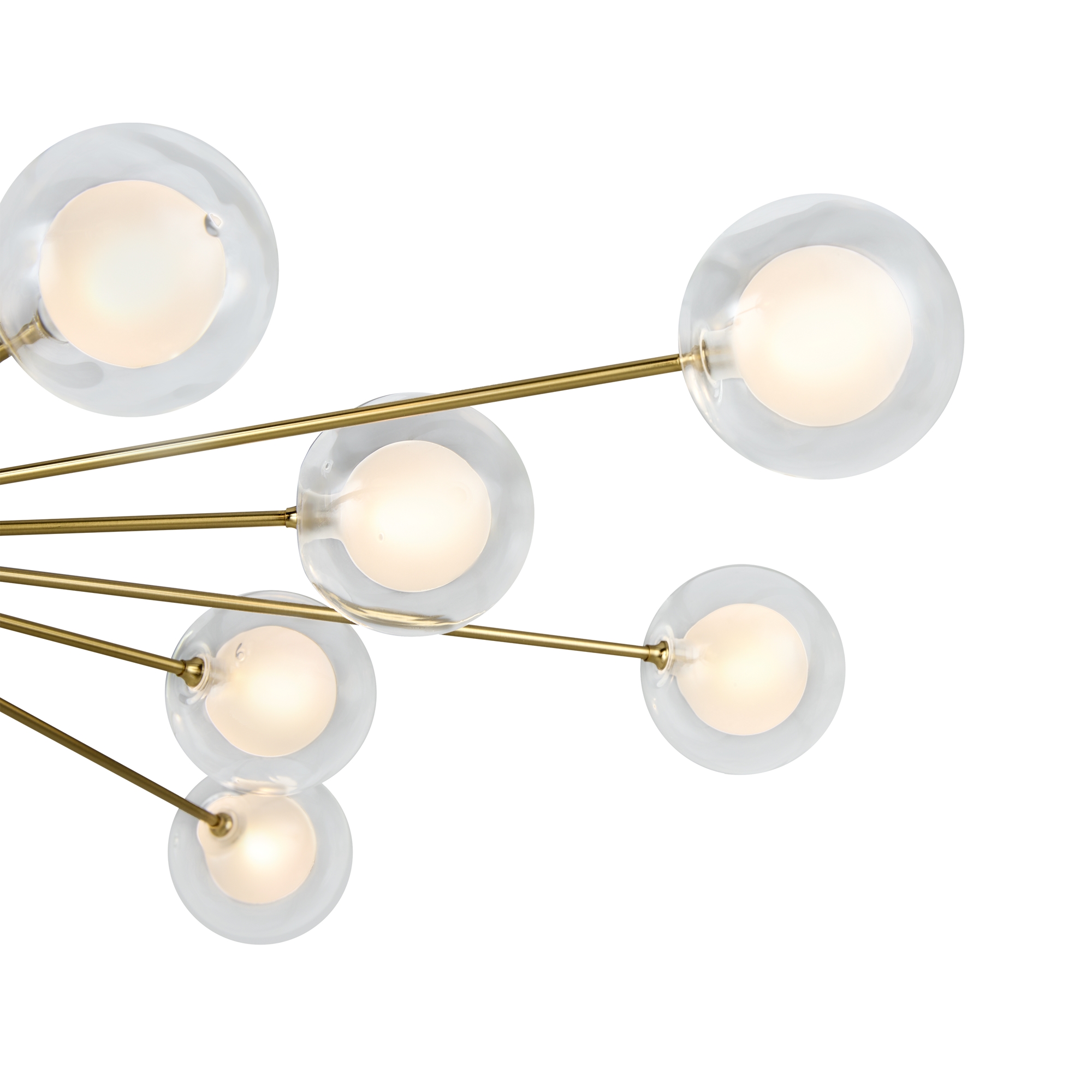Арматура - металл, цвет - черный, золотой. Плафоны двух видов: из двойного стекла - матового и прозрачного; акриловые с металлическим покрытием половины плафона в цвете латунь. Светильники серии Celebrity отлично подойдут для помещений с не высокими потолками. Источник света - лампа с цоколем G9.