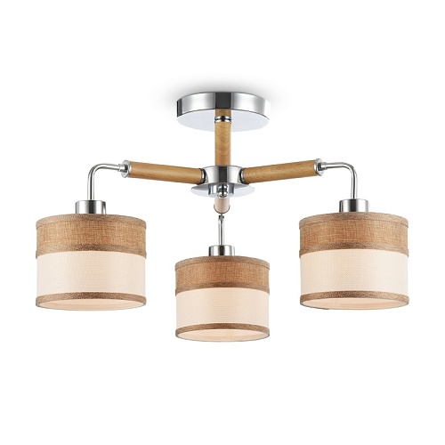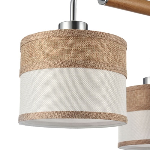 Двухцветные абажуры, сделанные из мешковины, сочетаются с древесной арматурой. Благодаря большому ассортименту изделий серии Helen легко выбрать светильник как для просторных помещений, так и для небольших.