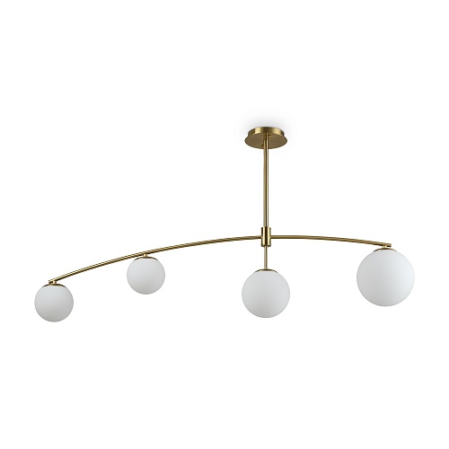 Арматура металл. Цвет латунь. Серия с необычной формой арматуры и раскидистыми плафонами. Белые плафоны в форме шара. Источник света лампа. Цоколь E14.