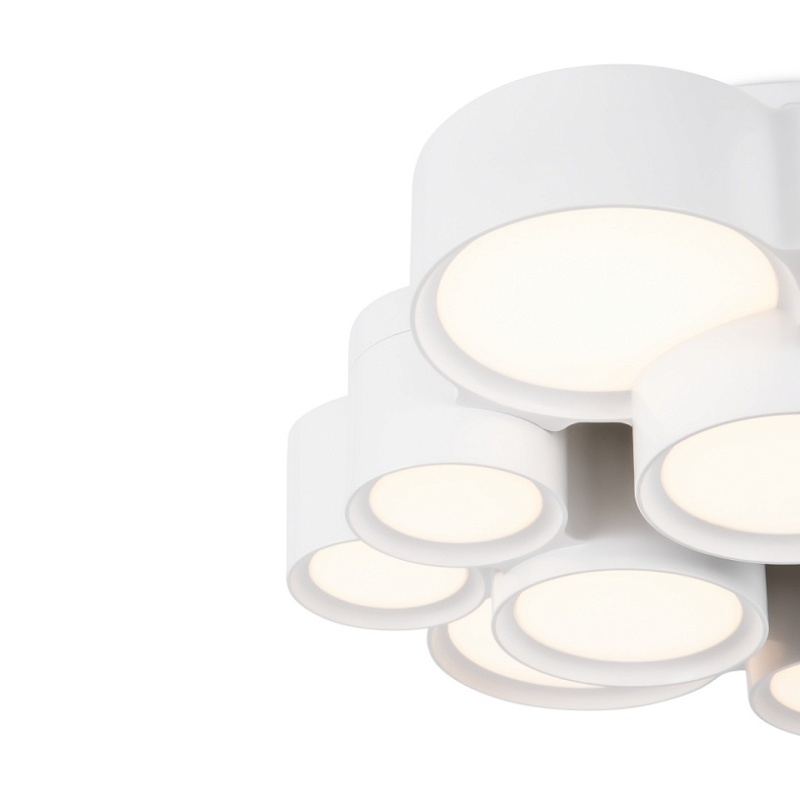 Переосмысление света как не только функционального элемента, но и полноценного арт-объекта, предмета декора вдохновило создателей уникальной серии светильников. Уникальной как по техническим, так и внешним параметрам. Металлические плафоны цилиндрической формы образуют единый круг, подвешенный на едва заметных тросах – за счёт этого создается ощущение, что вся композиция буквально парит в воздухе. Ощущение легкости и невесомости усиливается снежно-белым оттенком плафонов. Современные LED-источники света скрыты под акриловыми рассеивателями, благодаря чему освещение получается максимально ярким и равномерным. Серия из двух подвесных люстр и потолочной модели позволяет выбрать светильник, идеально подходящий под размеры помещения.