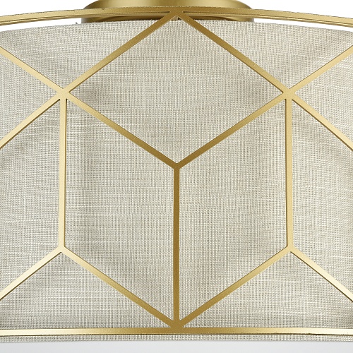 Арматура из металла золотого цвета. Абажур – натуральный лен на ПВХ. Металли ческий орнамент опоясывает абажур. Льняной рассеиватель.