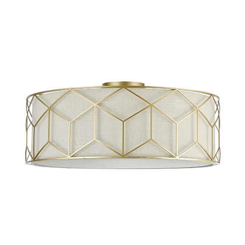Арматура из металла золотого цвета. Абажур – натуральный лен на ПВХ. Металли ческий орнамент опоясывает абажур. Льняной рассеиватель.