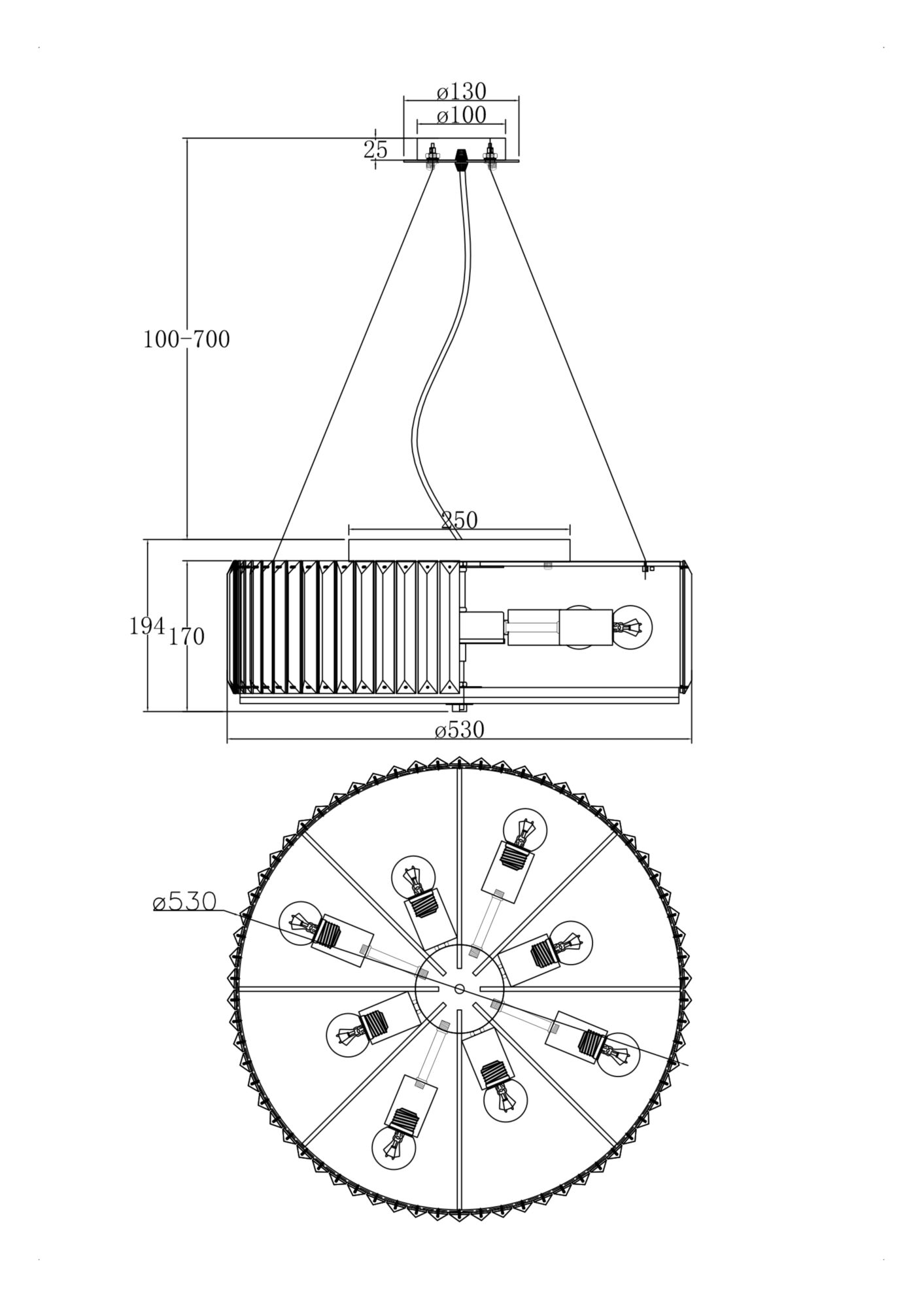 • Диаметр потолочной чаши (мм)