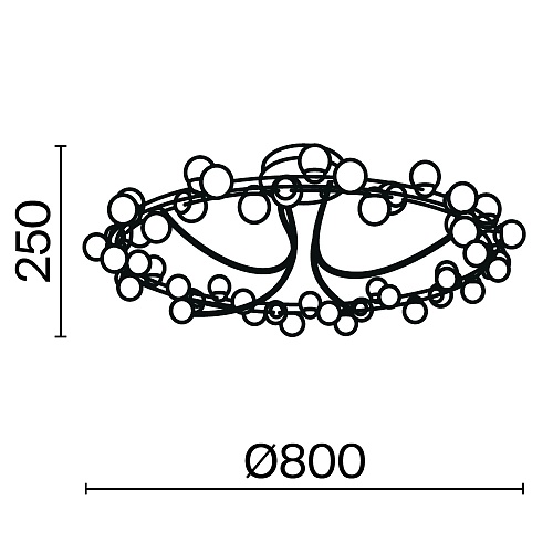 Арматура из металла в золотом цвете. Плафоны-сферы — белый пластик. Дизайн с имитацией молекулярной структуры. LED-источники света.