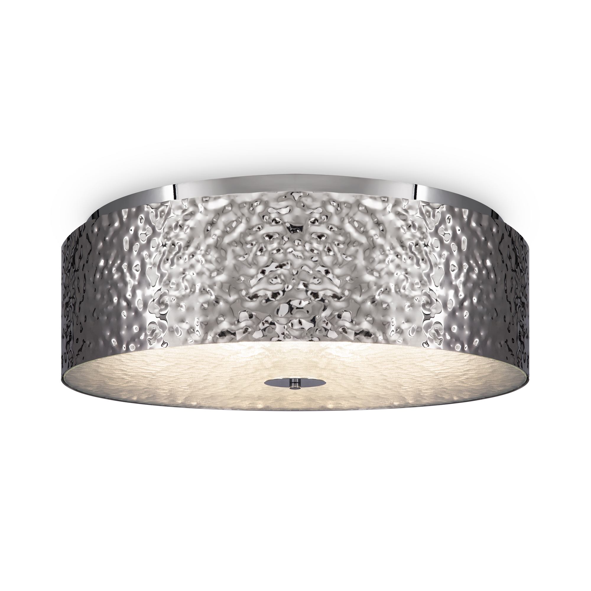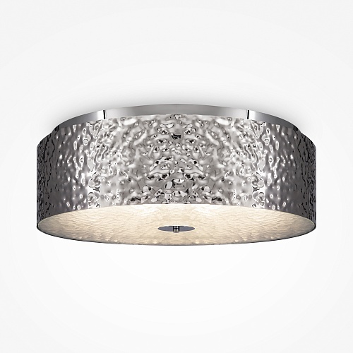 Арматура – металл в цветах хром и золото. Фактурный рисунок нанесен посредством чеканки. Стекло с рельефной поверхностью скрывает источники света. Декора тивный эффект «рябь на воде». Источник света - лампа с цоколем Е14.