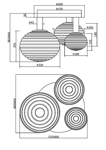 Материал арматуры - металл, цвета - черный, золото. «Динамичные» круглые плафоны со спиральным рельефом. Материал плафонов - стекло, цвета - белый матовый, глянцевый дымчатый. Провод 3 метра, длина регулируется. Источник света - лампы с цоколем Е14, Е27.