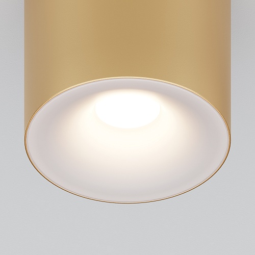 Материал корпуса – металл; цвет – белый, чёрный и золотой. Форма корпуса – стаканчик. Акриловый рассеиватель. Сияющий эффект при свечении. Отсутствие стопорного кольца. Утопленный источник света – лампа GU10.