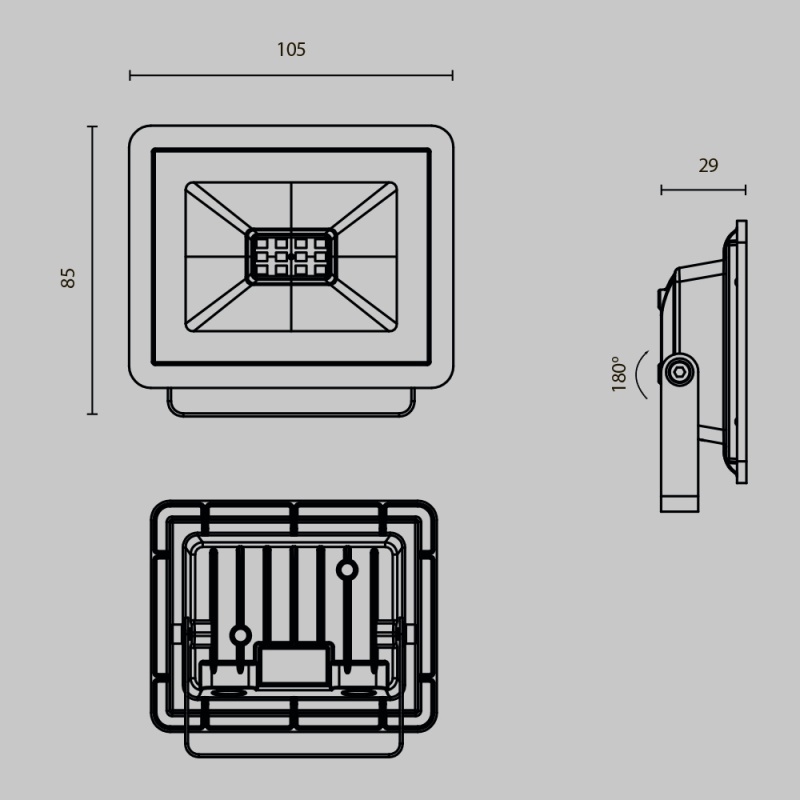 Прожекторы для освещения экстерьеров, рабочих пространств, производственных и промышленных помещений. Материал корпуса — алюминий. Цвет — чёрный. LED-источник света. Два варианта цветовой температуры - 4000К и 6500К. Пять размеров с соответствующими вариантами мощности — 10, 30, 50 Вт с датчиком движения. Модели 100 и 150 Вт без датчиков движения. Высокая степень защиты от пыли и влаги IP65.